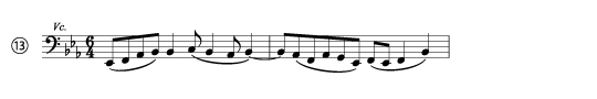 〈サンクトゥス〉が変拍子に転じた新たな山場を経て、管による〈サンクトゥス〉にチェレスタが絡む。この⑫cに、ヴァイオリン3人とヴィオラの室内楽を重ねた精妙な音響はレスピーギの真骨頂。曲はこの後、既出の主題を総動員したコーダとなり、全楽器を〈サンクトゥス〉や〈ロマネスカ〉が牽引する頂点で結ばれる。